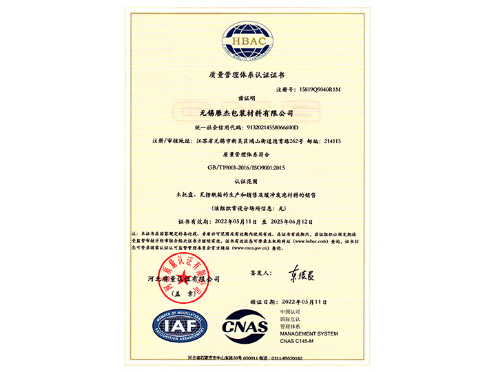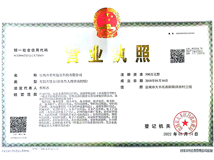 企業(yè)資質(zhì)鹽城市君雁包裝科技有限公司,始創(chuàng)于2021年,公司面積20000平方米。公司位于中國鹽城大豐區(qū)南陽鎮(zhèn)祥西村三組,是一家集研發(fā)、生產(chǎn)、銷售為一體的包裝材料企業(yè),產(chǎn)品涉及:外包裝紙箱,防水紙箱,涂蠟紙箱,浸蠟紙箱,冷柜紙箱,木包裝箱,免熏蒸木包裝箱,木托盤,EPE珍珠棉,珍珠棉袋,EVA板材,EVA大板,包裝海綿等包裝材料。包裝設計制造符合API、ANSI、ASTM、NACE、ISO、EN、BS、DIN、MSS SP等國際標準的要求,在鹽城以及周邊城市的市場上有良好的評價。公司擁有先進的生產(chǎn)設備,嚴格的管理制度和高素質(zhì)的人才團隊,保證了高質(zhì)量的產(chǎn)品和良好的服務,同時我司還可以根據(jù)客戶特殊工況需求,提供全套包裝技術解決方案。
